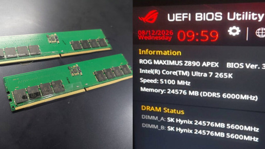 Asus показала работу новой памяти HUDIMM на своей плате. Раньше для экспериментов брали просто обычный модуль DDR5 и скотч