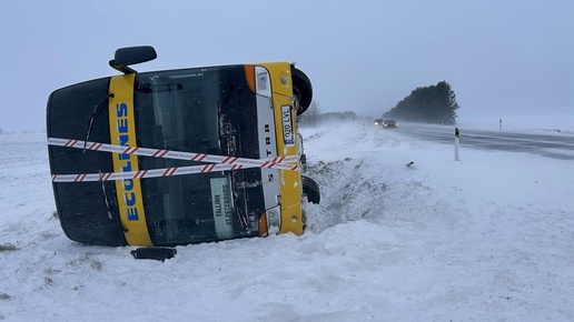 Автобус в Петербург опрокинулся на трассе в Эстонии из-за ветра