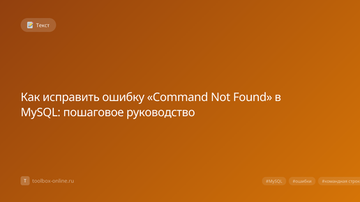 Ошибка «Command Not Found» в MySQL появляется, когда система не может найти исполняемый файл клиента или команду в текущем сеансе; обычно это связано с неправильным путём, неверным синтаксисом или некорректными переменными среды. Чтобы избавиться от этой ошибки, достаточно проверить установку MySQL, поправить PATH и убедиться, что запрос написан без опечаток. Ошибка возникает сразу после ввода команды mysql в терминал, если операционная система не знает, где находится исполняемый файл. Это происходит, когда путь к mysql...