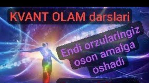 Assalomu alaykum. "Kvant olam bilimlari" darslari boshlaymiz. Bu bilimlar sizga nimaga kerak? "Kvant olam bilimlari" darslari o'rganib, siz o'zingizning kvant maydoningizdagi barcha jarayonlar bilan o'ziz mustaqil ishlay olasiz. Ya'ni siz kvant maydoningizni negativ jarayonlardan tozalab, eski programmalarni o'chiribm yangi yuqori vibrasiyali bilimlar orqali kvant maydoningizga orzularingizni yorqin energiya shaklida kiritishingiz mumkin. Bu orqali orzularingiz oson va yengil amalga oshishni boshlaydi...