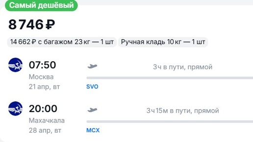 из Москвы за 9600руб. 6 апреля - 11 апреля https://trvl.click/x/K3hif из Санкт-Петербурга за 11300руб. 6 апреля - 11 апреля https://aviasales.tpo.li/hGHmnedu из Казани за 16900руб. 10 апреля - 17 апреля https://trvl...