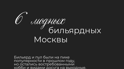 Мы собрали шесть бильярдных в Москве: здесь комфортно как тем, кто относится к процессу серьезно, так и тем, кто приходит за настроением. В этом сезоне бильярд уверенно входит в городской лайфстайл. Куда идти и что выбрать — на focusmoda...