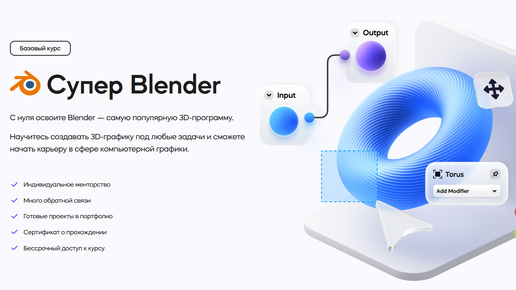 Blender — универсальный инструмент для создания 3D-графики, моделирования, текстурирования, анимации, рендеринга и других задач. Базовый курс «3D моделирования в Blender» - ознакомиться с курсом Базовый...
