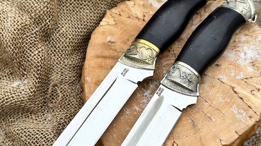 чёрного граба и мельхиора. Сталь M390 обладает высокой твердостью (HRC 62, после криообработки), хорошо держит заточку, имеет хорошую пластичность. Размеры ножа: длина клинка 118 мм, ширина 31 мм, толщина 2,4 мм, длина рукояти 122 мм. На клинке чуть вогнутая линза от середины спусков, фальшлезвие на передней части обуха, финишная полировка в зеркало, заточен до бритвенного состояния...