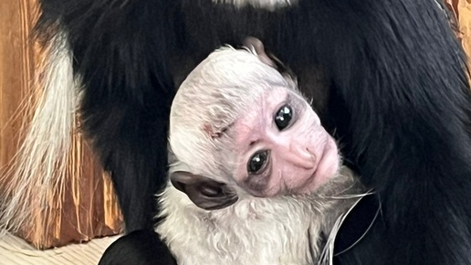 «Шерлок», «Ержан» или «Бинго Бонго»: в Тюмени у пары восточных колобусов родился малыш с белоснежной шерстью