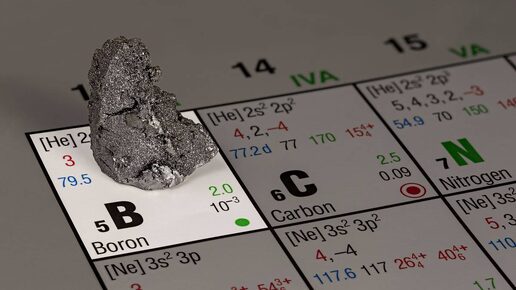 БОР (лат. Borum), B (читается бор), химический элемент с атомным номером 5, атомная масса 10,811. Природный бор состоит из двух стабильных нуклидов (см. НУКЛИД)10В (19,57%) и 11В. Бор расположен во втором периоде в группе IIIА. Конфигурация электронной оболочки слоя 1 s22 s2 1. Радиус нейтрального атома бора 0,088—0,097 нм, радиус иона В3+ — 0,025 нм. По шкале Полинга электроотрицательность (см. ЭЛЕКТРООТРИЦАТЕЛЬНОСТЬ) бора равна 2,04. Для бора наиболее характерно образование соединений в степени окисления +3 (валентность III)...