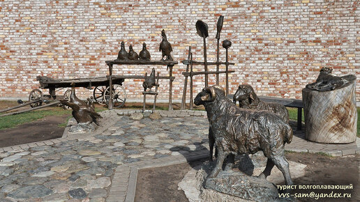 О некоторых достопримечательностях на улице Каюма Насыри я рассказал в двух предыдущих заметках, и в последней из них – о музее чая, расположенном в доме №5, доме купцов Кушаевых. Между основным домом (№5) и флигелем (№7) находятся кирпичные ворота, ведущие во внутренний двор усадьбы. Там организован мини-зоопарк с живыми и бронзовыми животными. Туда и направимся. Во двор можно попасть и через калитку, расположенную рядом с воротами. Хорошо видно белое пианино под лестницей, ведущей на жилой этаж флигеля...