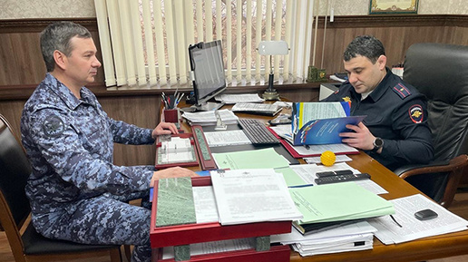 Начальник ФКУ ИК-7 УФСИН России по Республике Дагестан подполковник внутренней службы Хаджимурад Саламов провел рабочую встречу с начальником Центра хозяйственного и сервисного обеспечения МВД по Республике Дагестан майором внутренней службы Исламом Абуганипаевым. Стороны рассмотрели перспективы взаимодействия в сфере изготовления и поставки мягкого инвентаря. Особое внимание было уделено развитию производственной базы исправительного учреждения и увеличению объемов выпускаемой продукции для нужд ведомства...