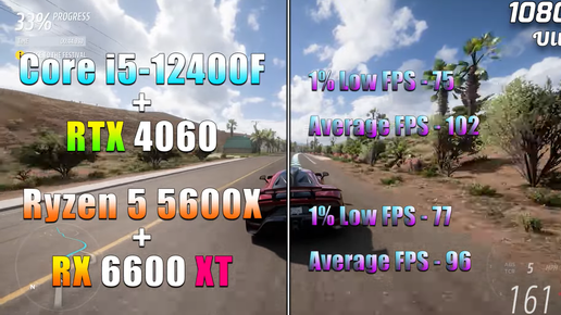 Какая связка в играх показывает себя лучше: Core i5 12400F + RTX 4060 или Ryzen 5 5600X + RX 6600 XT? На этот вопрос ответили на YouTube-канале TheSpyHood. Forza Horizon 5 запускалась в 1080p со средней частотой кадров 102 к/с и 96 к/с (i5-12400F + RTX 4060 и R5 5600X + RX 6600 XT), в 1440p - с 78 и 76 к/с соответственно. Resident Evil 4 шла в разрешении Full HD со средней производительностью 107 к/с (i5-12400F + RTX 4060) и 93 к/с (R5 5600X + RX 6600 XT), в 1440p - с 71 к/с и 66 к/с. В The Last...