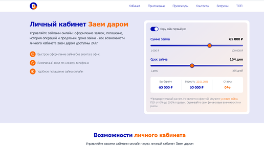 Личный кабинет Заём даром | Регистрация и вход — займ без процентов