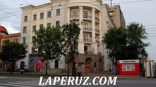 В 1934 году Дальлеспрому передали участок в Хабаровске на пересечении улиц Запарина и Муравьёва-Амурского. На нём построили гостиницу для временного размещения приезжавших работать на Дальний Восток. Строительство велось в 1935-1937 годах, проект разработали архитекторы Г.И. Коробовцев и Е.Б. Серебряков. На первом и цокольном этажах гостиницы были размещены ресторан, аптека и управление Соцкульторга, на остальных — номера. До середины 1960-х годов в здании имелись и гостиничные номера, и коммунальные квартиры...