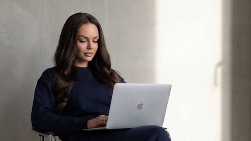 Девушка в кресле с ноутбуком, расслабленный рабочий образ