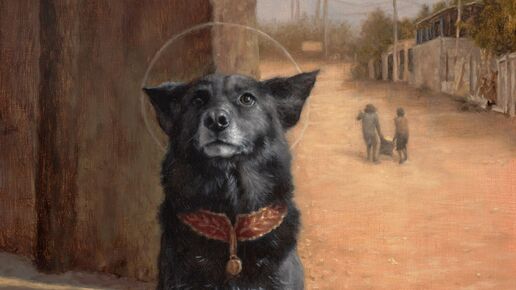 На небольшом полотне размером 10 на 8 дюймов изображена чёрная собака, сидящая у кирпичной стены. Её поза спокойная, почти торжественная. Вокруг лежит рассыпанный рис, несколько томатов. На заднем плане — дети, идущие вдаль. И всё бы выглядело почти обыденно, если бы не одно: над головой собаки — нимб. Нимб едва заметен. Но именно он переворачивает смысл сцены. Это не просто уличная собака. Это — символ. Свидетель. Образ того, кого мы часто не замечаем. Диего Де Ла Роса родился в Мексике в 1980-х...