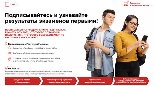 Друзья! Наступила пора школьных экзаменов. Смотрите результаты экзаменов (ЕГЭ, ОГЭ, ГВЭ, итогового сочинения/изложения) на портале: mos.ru/pgu/ru/services/procedure/index.php?poid=0&soid=0&toid=7700000010000186756 Подпишитесь на push-уведомления в приложении «Госуслуги Москвы», либо на email-уведомления на портале mos...