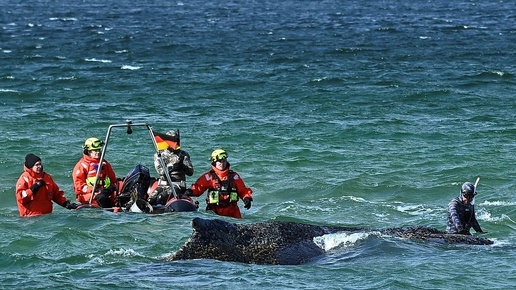 Горбатый кит, застрявший у балтийского побережья Германии, впервые за несколько недель подал признаки активности и сдвинулся с места. Об этом сообщило агентство DPA. Поводом для реакции животного стало приближение водолаза. Человек, видимо, его напугал и тот решил сдвинуться с мертвой точки. Кит резко ударил хвостовым плавником и развернулся почти на 90 градусов. Однако после того как участники операции отплыли на безопасное расстояние, животное успокоилось и вновь замерло на мели. Волонтеры тем временем продолжают подготовку к спасательной операции...