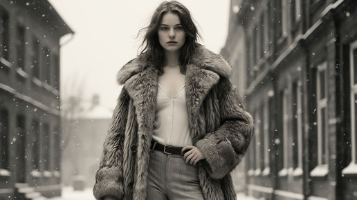 Представьте: морозный день, воздух искрится от снежинок, а по заснеженной улице идёт девушка. На ней — не скучный пуховик из масс‑маркета, а настоящая доха: мех ловит свет, силуэт плавный, движения свободные...