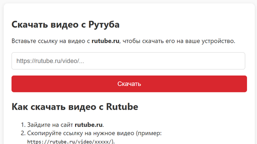 Скачать видео с Rutube по ссылке без установки программ можно через онлайн-сервисы с полем для вставки URL — достаточно скопировать ссылку, вставить в форму и выбрать качество в Quality Selector UI перед загрузкой. После получения URL сервер-посредник запрашивает метаданные через API Rutube, скачивает медиафайл к себе и генерирует временную Direct Download Link для пользователя со сроком действия 15–60 минут. Максимальное качество большинство сервисов ограничивает 720p: загрузка 1080p и 4K-потоков...