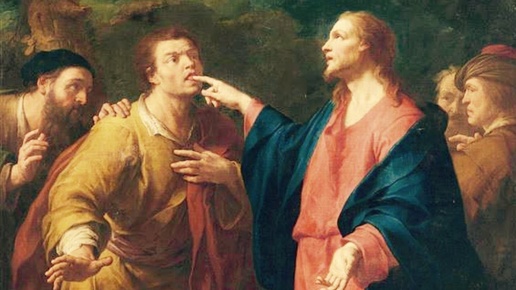 Покинув пределы Тира, Иисус вновь направился в земли с языческим населением — через Сидон к морю Галилейскому, посреди пределов Десятиградия. И здесь, в этом краю, где иудейские поселения соседствовали с эллинскими городами, к Нему вновь привели еврея-страдальца. Привели к Нему глухого, косноязычного. Просьба была смиренна и точна: просили Его возложить на него руку. Но Иисус действовал иначе, как всегда, сообразуясь со сокровенной нуждой человека. Он отвёл его в сторону от народа, дав ему достоинство личной встречи, а не публичного зрелища...