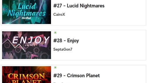 Большой выпуск новостей, тут просто море всего, в том числе и супер важного. Начнём с главного демона, который сегодня прибыл в топ. Enjoy от SeptaGon7, короткий экстрим демон в материал стиле, под, внимание, английскую версию трека Тату - Нас не догонят. Уровень не имеет рейт, но также как и Moment - должен его получать.