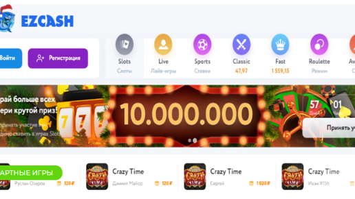 РАБОЧИЙ МЕТОД ЗАРАБОТКА Игры издавна пользовались популярностью. С появлением Интернета количество любителей азартных развлечений намного выросло. Онлайн игры в ассортименте представлены в игорных заведениях. Одним из таких порталов является EZCASH,предлагающий пользователям самые популярные онлайн-игры. Здесь утверждают, что получить прибыль вполне реально. Действительно ли это так или клиенты останутся в проигрыше, будем выяснять. Платформа EZCASH является игровой, но здесь доступны функции реального заработка, вывода денежных средств...