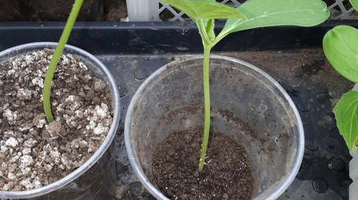 Рассада огурцов сильно вытянулась. Апрель 2026