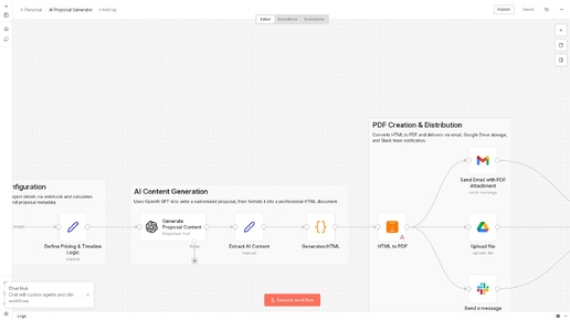 ⚡ Что делает: Автоматизация принимает запрос через вебхук, генерирует предложение с помощью OpenAI и формирует его в PDF с помощью Htmlcsstopdf. Затем документ сохраняется в Google Drive и отправляется по электронной почте через Gmail. 👥 Кому подойдёт: Подходит для фрилансеров и компаний, нуждающихся в быстром создании коммерческих предложений...