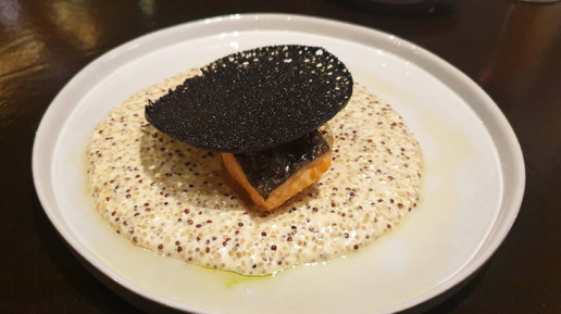 Geraldine – давний французский ресторан от братьев Познеров (изначально) начал свою деятельность в 2004-м году. В 2017-м с проектом случился перезапуск под чутким руководством Александра Раппопорта. С тех пор это необистро. Месторасположение прежнее, в Коробейниковом переулке, в нескольких шагах от дорогой Остоженки. Фасад и уличное оформление спустя три года после моего предыдущего визита остались без изменений: серый кирпич, ряд квадратных окон в желтых огоньках, зеленые вывески и скромный вход с двойными дверями...