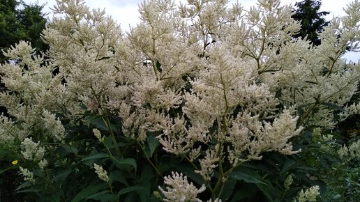 Первого ещё, второго уже. Поэтому фотографии не дворовые – из парка «Черное озеро». Сейчас они оба цветут и на мимодумный взгляд похожи друг на друга. Оба растут кустом, массивом, рост полтора–два метра, у обоих крупные белые соцветия – метелки. Хотя не родственники и разных жизненных форм. Горец изменчивый – многолетняя трава семейства гречишные. С ним я познакомилась в этом парке прошлой осенью. Для меня это было потрясение. Хотя он показался сорнякоподобным, теперь понимаю, почему: тогда цветение завершалось, соцветия были коричневатые...