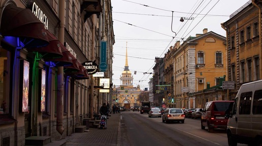 Гороховая, 1 (Адмиралтейский проспект, 8) Дом № 1 по Гороховой улице за двадцать лет (1781, 1801) сменил трех хозяев купцов И. Г. Щербакова, И. П. Кутайсова и Г. П. Гампса. Годы постройки: 1780—1790; 1899 (архитектор Г. Г. фон Голи, стиль — классицизм). Судя по полученным сведениям, здесь размещался трактир первого класса с громким названием «Город Лондон», а также первый в городе магазин «гуммилистических» (резиновых) изделий. Тут же вспомнилась реклама времен послереволюционной России: Дождик, дождь впустую льешь Я не выйду без галош...