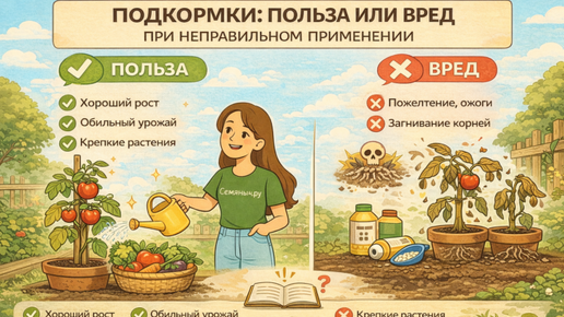 Подкормки давно стали неотъемлемой частью ухода за растениями. Они помогают восполнить дефицит питательных веществ, ускорить рост и повысить урожайность. Однако практика показывает, что именно подкормки чаще всего используются неправильно. Избыточное питание может нанести растениям не меньший вред, чем его недостаток. Как эксперты магазина Семяныч.ру, мы регулярно сталкиваемся с ситуациями, когда садоводы стремятся «помочь» растениям, но в итоге сталкиваются с замедленным ростом, болезнями и снижением урожая...