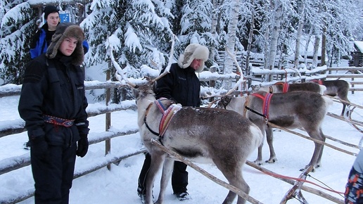 Начало Итак, 1 января. Знаю, в это трудно поверить, но мы проснулись рано утром. Не потому, что такие молодцы, а потому что зимой в Лапландии световой день короткий - надо пользоваться моментом. Спустились в холл отеля узнать про экскурсии. Нам предложили: оленья ферма, ферма хаски - каждая по 90 евро с носа. Или совмещённая за 150. Мы быстро пораскинули мозгами: нас было четверо, 4 х 150 = 600 евро. За эти деньги можно не только на ферму съездить, но и машину напрокат взять, и бензин залить, и ещё на сувениры останется...
