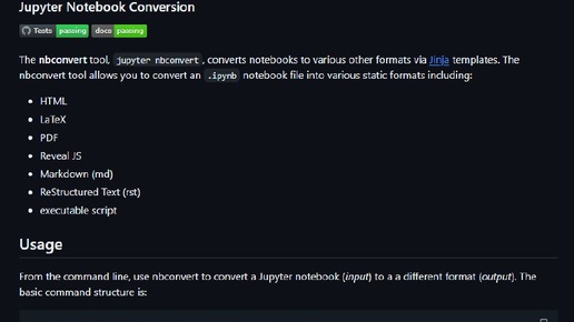 📔 nbconvert — это официальный инструмент проекта Jupyter для конвертации Jupyter Notebook (.ipynb) в различные форматы: HTML, PDF