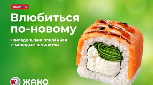 В меню «Жако» появилась весенняя новинка — ролл Филадельфия опалённая. Она пробудет в меню до конца мая 2026 года. Весна — это время влюбиться по-новому. Поэтому мы взяли за основу новинки один из самых популярных роллов — Филадельфию — и преобразили его. Вкус весеннего ролла получился необычным и свежим благодаря новой технологии и новому ингредиенту. Обжигание пламенем. Чтобы подчеркнуть и разнообразить вкус лосося, мы впервые решили использовать на кухнях технологию обжигания пламенем. Под действием огня лосось светлеет, приобретает лёгкий аромат дымка, а текстура становится более нежной...