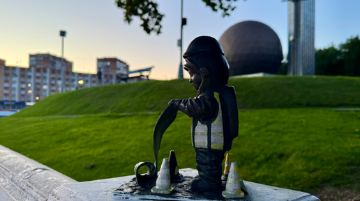 В последнее время стало довольно популярным устанавливать в городе на туристических маршрутах небольшие металлические фигурки, связанные с местной тематикой, поиск которых становится развлечением для туристов, одновременно помогая им знакомиться с городом и его достопримечательностями. Например, в Калининграде - это хомлины (что-то типа домовят), в Ярославле - медведики. Калуга тоже решила перенять традицию и в городе появились маленькие космонавтики, автором которых является калужский скульптор Алина Фарниева...