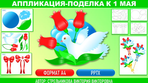 Данная методическая разработка подготовлена Стрельниковой Викторией Викторовной, методистом и педагогом дополнительного образования МБУ ДО ДДЮТ г. Армавира, является авторской, предназначена для педагогов дополнительного образования, педагогов-организаторов, учителей начальных классов, классных руководителей, родителей детей, может использоваться при подготовке учащимися в возрасте от 6 до 10 лет поделок и аппликаций к празднику 1 Мая, для воспитательных мероприятий, организации досуговой деятельности...