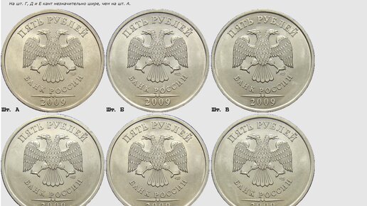 Каталог А.Сташкина. 5 рублей, подробное описание аверсов и реверсов.