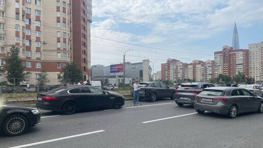 Сразу шесть машин столкнулись на улице Савушкина в Петербурге