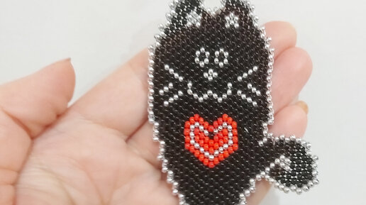 Здравствуйте, дорогие подписчики и гости моего канала! Сегодня предлагаю вам схему фигурки из бисера котика в технике кирпичное плетение Для работы вам понадобятся игла, нить или леска для бисероплетения, бисер: красный, серебристый и черный. В работе использую капроновую нить TYTAN 100 белого цвета и бисер preciosa № 10...