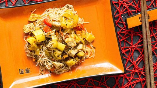 Рисовая лапша с тофу и овощами