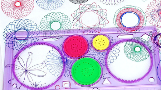 Доброго времени суток! Недавно приобрела для ребëнка спирограф. Занимательное занятие не только для детей, но и для взрослых. Спирографом называют детскую игрушку, состоящую из линейки с разными по размеру вырезанными кругами и набора колесиков меньшего размера с отверстиями внутри. Линейка прикладывается к листу бумаги, колёсико помещается внутрь круга, в одно из отверстий на колёсика вставляется карандаш или ручка...