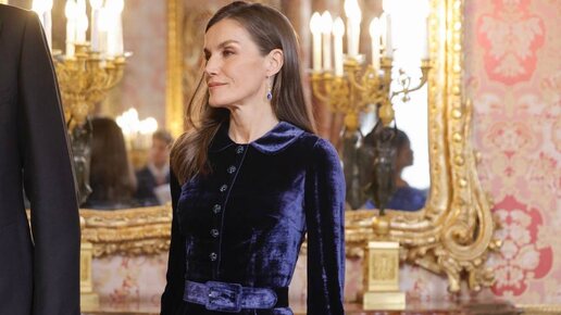 Для мероприятия королева предпочла бархатное платье макси королевского синего цвета. Как вам образ королевы?