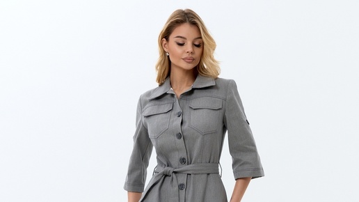 MARCA - российский бренд одежды Джинсовое платье миди. Застежка по переду на петли и пуговицы. Отделочная строчка контрастной нитью. Отрезная линия талии. Рукав ¾ прямой, длина регулируется патой. Воротник рубашечный. В боковых швах юбки карманы...