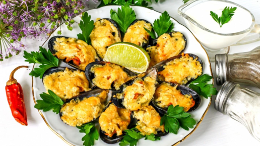 МИДИИ В ДУХОВКЕ. Простой рецепт домашних запеченных мидий под чесночно-сырным соусом
