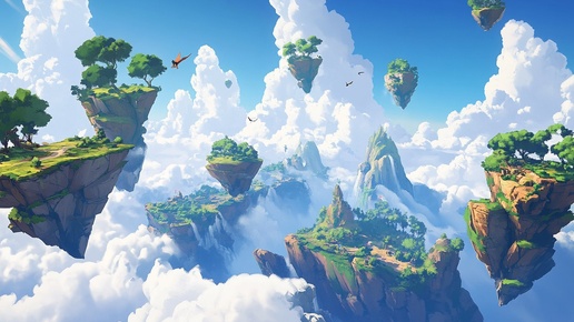 Создано на основе запроса: Dungeons and dragons mood picture, game concept art, flying islands in the sky, 4k hd fantasy, 2d painted artstyle, vast, --- Автоперевод: Подземелья и драконы картинка настроения,...