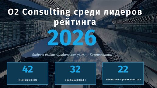 O2 Consulting сохраняет за собой сильную позицию на рынке юридических услуг и вновь оказалась среди лидеров рейтинга. — В 2026 мы были номинированы в 42 номинациях, из которых 32 - на уровне Band 1. — Также у O2 Consulting - 22 номинации в рейтинге «лучших юристов». Коммерсантъ впервые провел сегментирование рынка на три категории: Доминанты юридического рынка, Системные лидеры и Лидеры...