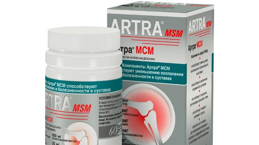 Артра Краткое описание Бренд Артра (Artra) компоненты артра - мсм способствуют уменьшению воспаления и болезненности в суставах, за счет высокой концентрации традиционных компонентов хондроитин и глюкозамин, усиленных комплексом МСМ с гиалуроновой кислотой...