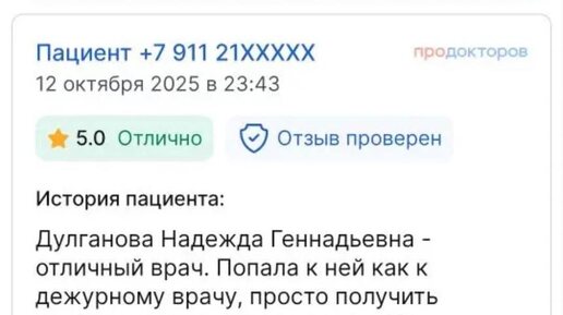 Делюсь одним из них. 💬«Попала к Надежде Геннадьевне как к дежурному врачу… Её неравнодушие поразило. Прежде чем выписать направление, уточнила причины состояния, посмотрела все мои справки, результаты. Назначила дополнительное обследование, договорилась с коллегами о срочном приёме. Очень рада, что попала к ней...