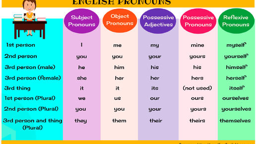 1. личные местоимения в именительном падеже (субъектные местоимения, subject pronouns);