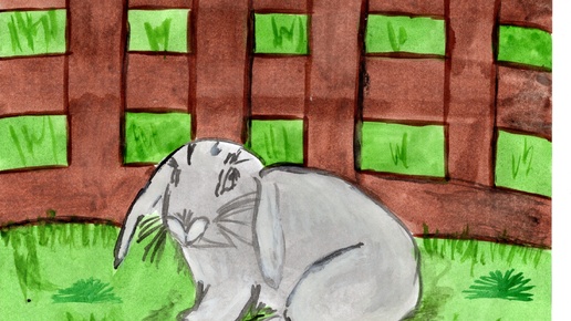 Описание работы: Иллюстрация к стихотворению Николая Рубцова «Про зайца». Заяц замер посреди луга — испуганный, бестолковый», не зная, что делать...