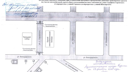электромеханическим техникумом. В соответствующем документе, опубликованном на сайте мэрии Курска, сказано, что движение уже перекрыто с 20 декабря на участке улицы Серафима Саровского от перекрестка с Володарского до пересечения с улицей Максима Горького...